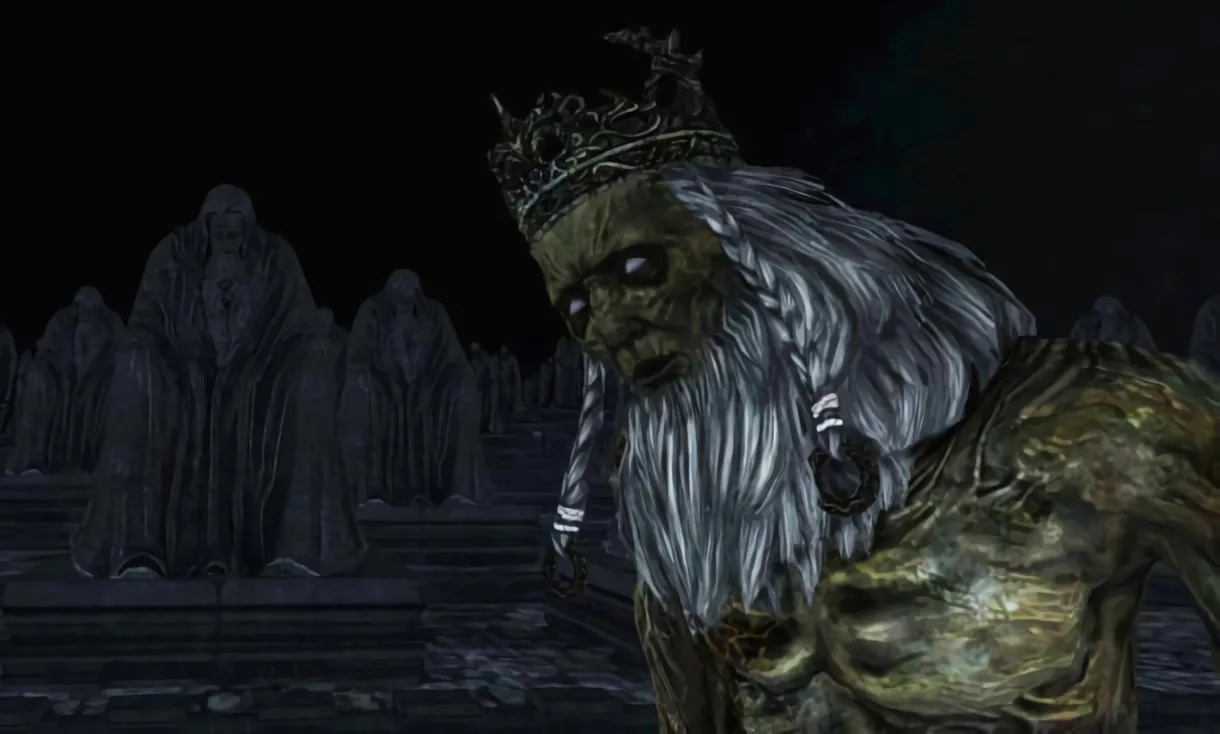 Nesse momento, pegue o anel e volte depois, quando tiver pelo menos 4 das 5 Souls of Giants que você irá encontrar posteriormente. O rei tem uma altíssima defesa, e só com as Souls no inventário que ele poderá ser vencido (e por isso não use as almas, esteja com elas no seu inventário). Sem ter as Souls no inventário, será quase impossível conseguir desferir dano nele, pois sem ter nenhuma Soul, ele tem 32x de defesa. Na listagem abaixo tem o multiplicador: