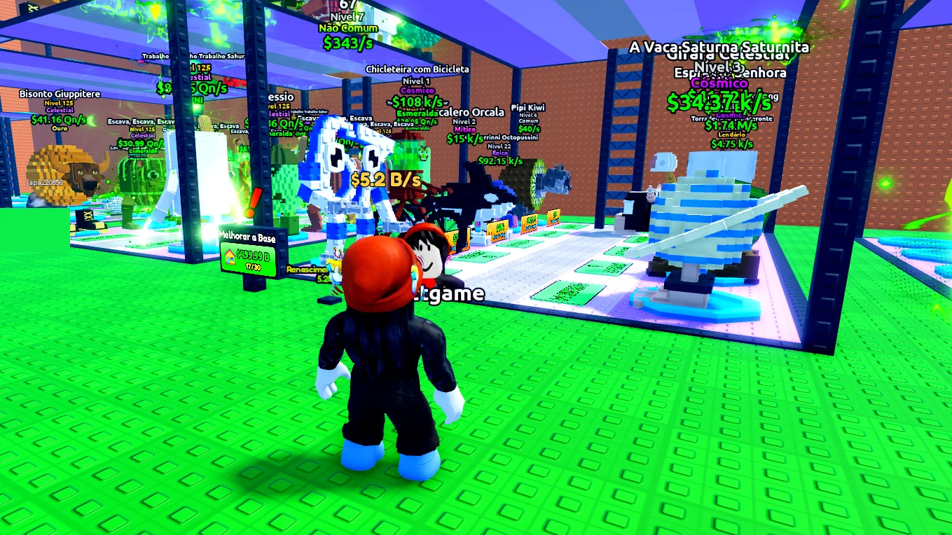 Mas qual a diferença entre os 2 jogos ? Caso esteja chegando agora, em “Fuja do Tsunami para Brainrots” o jogador pega os brainrots no corredor, tem de escapar das ondas gigantes e ainda consegue evoluir os brainrots usando o dinheiro. E também de ir melhorando a velocidade.