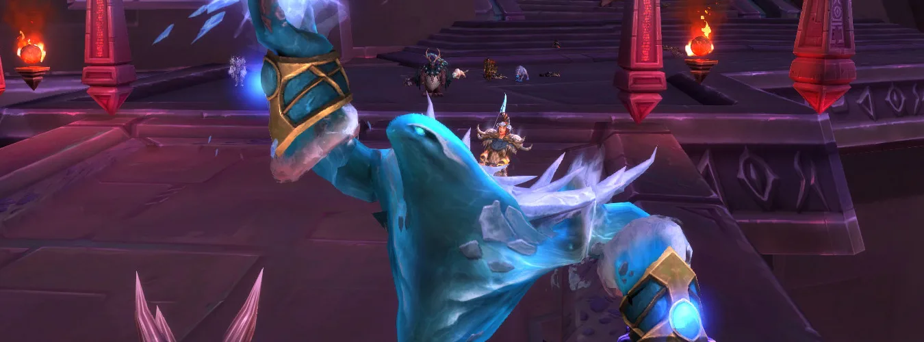 - Comentários do desenvolvedor: Soubemos de um exploit que permitia que os jogadores da Horda usassem uma combinação de habilidades e montarias para pular direto para o fim da instância. Isso era feito com mais frequência para aumentar as chances de receber a Borrasca Glacial na batalha com Jaina Proudmore. Em vez de simplesmente corrigir o problema para impedir que isso seja feito, decidimos fornecer uma maneira legítima de obter o mesmo resultado.