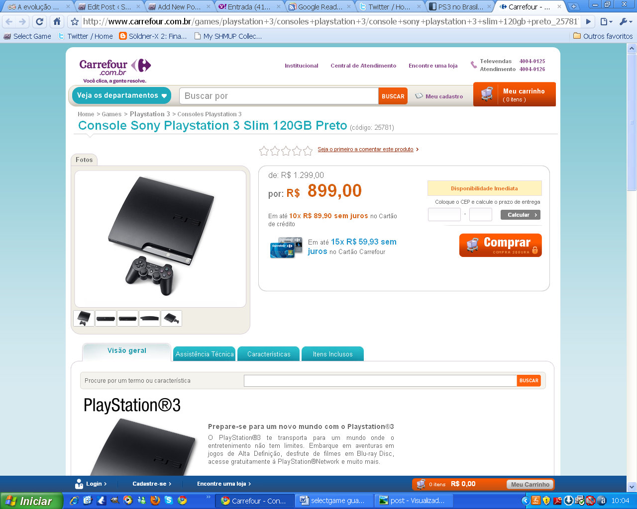 PS3 Slim de 120 GB no Carrefour a 899 reais