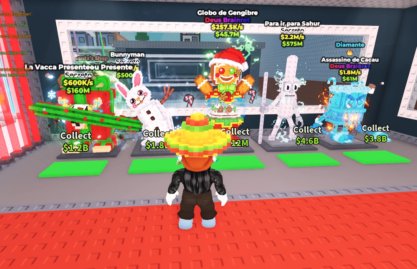 Mas quando joguei o evento eu não tive muita sorte, já que as lucky box não estavam vindo brainrots raros, mas alguns curiosos eu consegui, como os “Chrismasmamat”, que são os “lápis” coloridos temáticos.