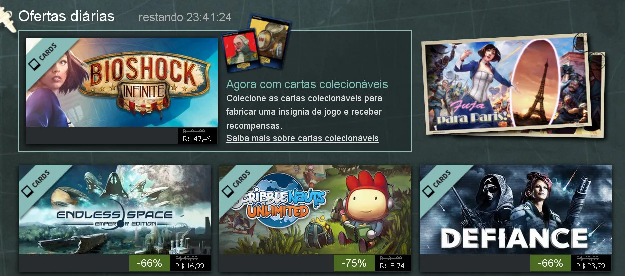 Aproveitando, sempre é bom relembrar as dicas para sobreviver na Summer Sale do Steam! Como eu estou com 150 jogo na loja e até agora só joguei 3 com mais afinco (Castlevania: Lords of Shadow, Magic 2014 e o Neverwinter, sendo que este último não joguei tanto quanto gostaria) então vou acabar sobrevivendo nesta summer sale por não ter muitos jogos pro meu estilo de jogo (pois ando tendo mais interesse em pegar RPGs clássicos no PC). Mas acho que se aparecer alguma promoção no Skyrim ou no Dark Souls II eu vou ficar bem tentado a comprar!