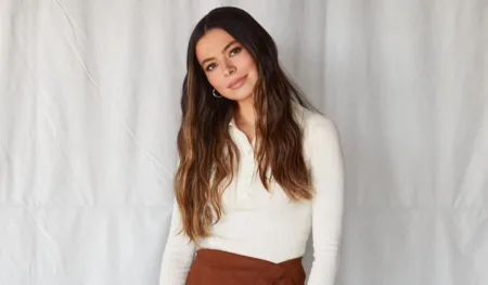 Look de Miranda Cosgrove com minissaia marrom (Estilo)