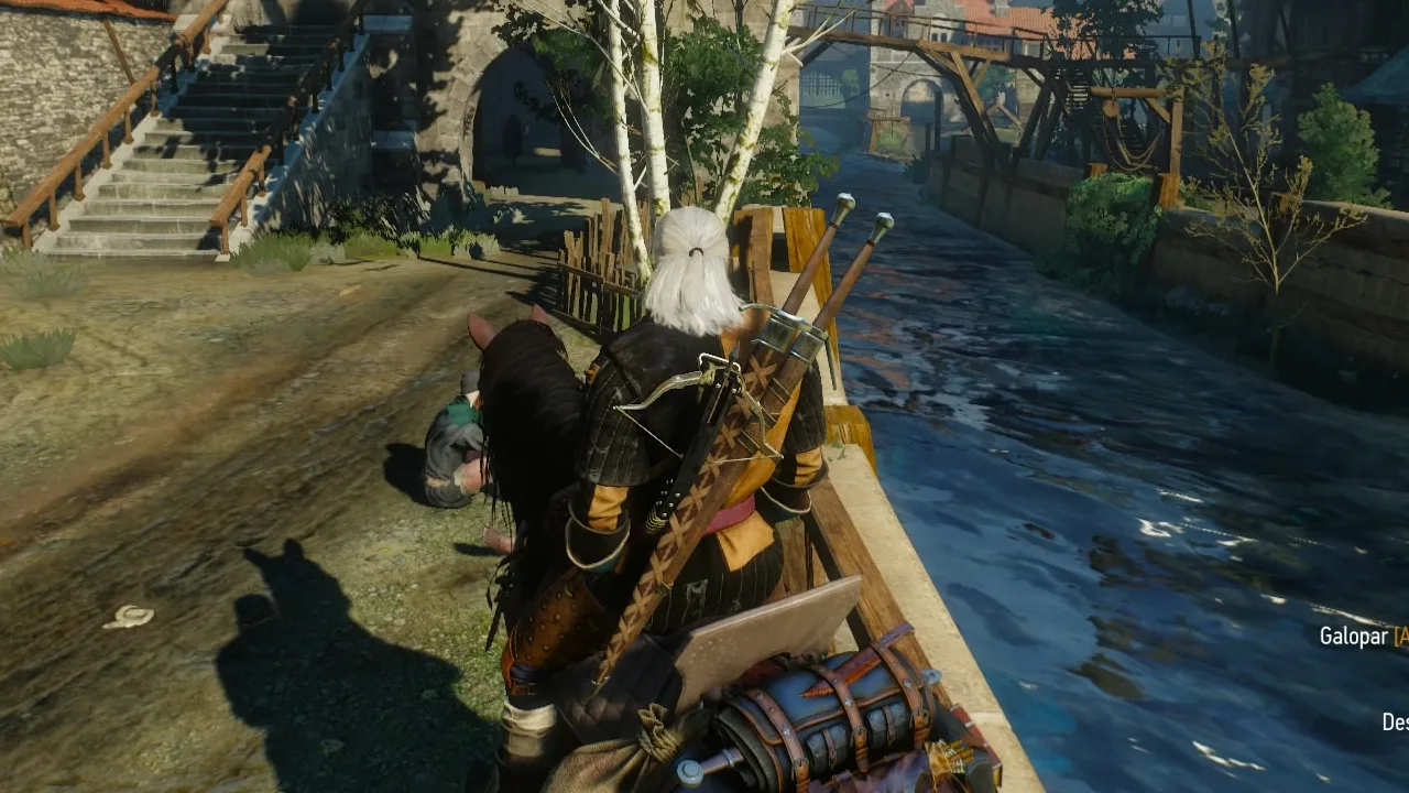 Como estava em uma missão secundária em Novigrad (onde andei seguindo um curso corrente de água no subsolo, atrás de um tesouro de um NPC) então acabei sobrecarregado e com isso decidi procurar na cidade se tinha opções de alforjes especiais, aumentando o espaço disponível no inventário. Para quem joga em inglês, o nome é saddlebag, e em Novigrad encontrei 2 vendedores que vendem alforjes!