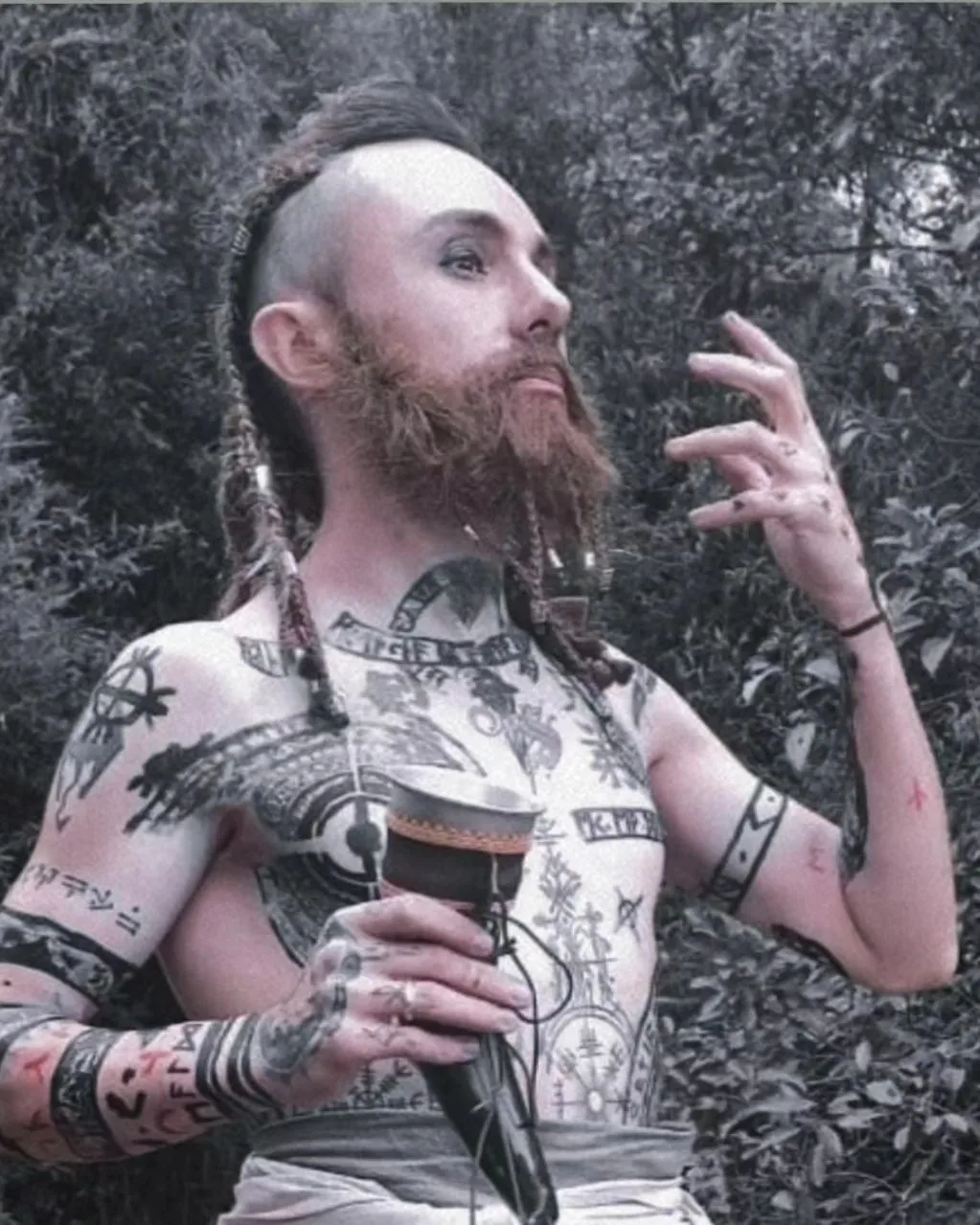 A caracterização impressiona, incluindo as tatuagens do personagem.